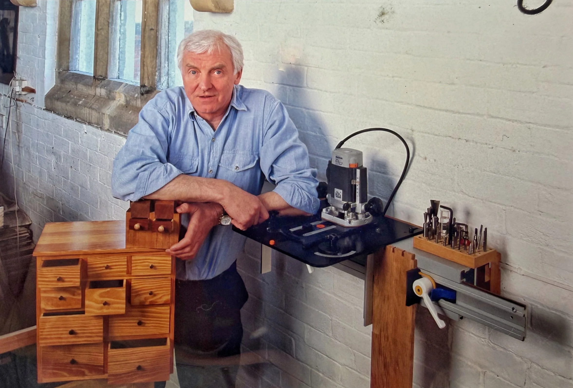 The hand-held router was invented in the early nineteen fifties and not much has happened to them since since. They, still need two hands to operate them in a router table where they get put upside down, where you cannot read the depthing scale. There are many types of windey handle to avoid pushing up on the two handles, but none as neat and quick as Woodrat’s PlungeBar. Squeeze the bars to raise the router and lock it off with one hand while you check the depth with the other. Or forget the router table and have it the right way up in a WoodRat.