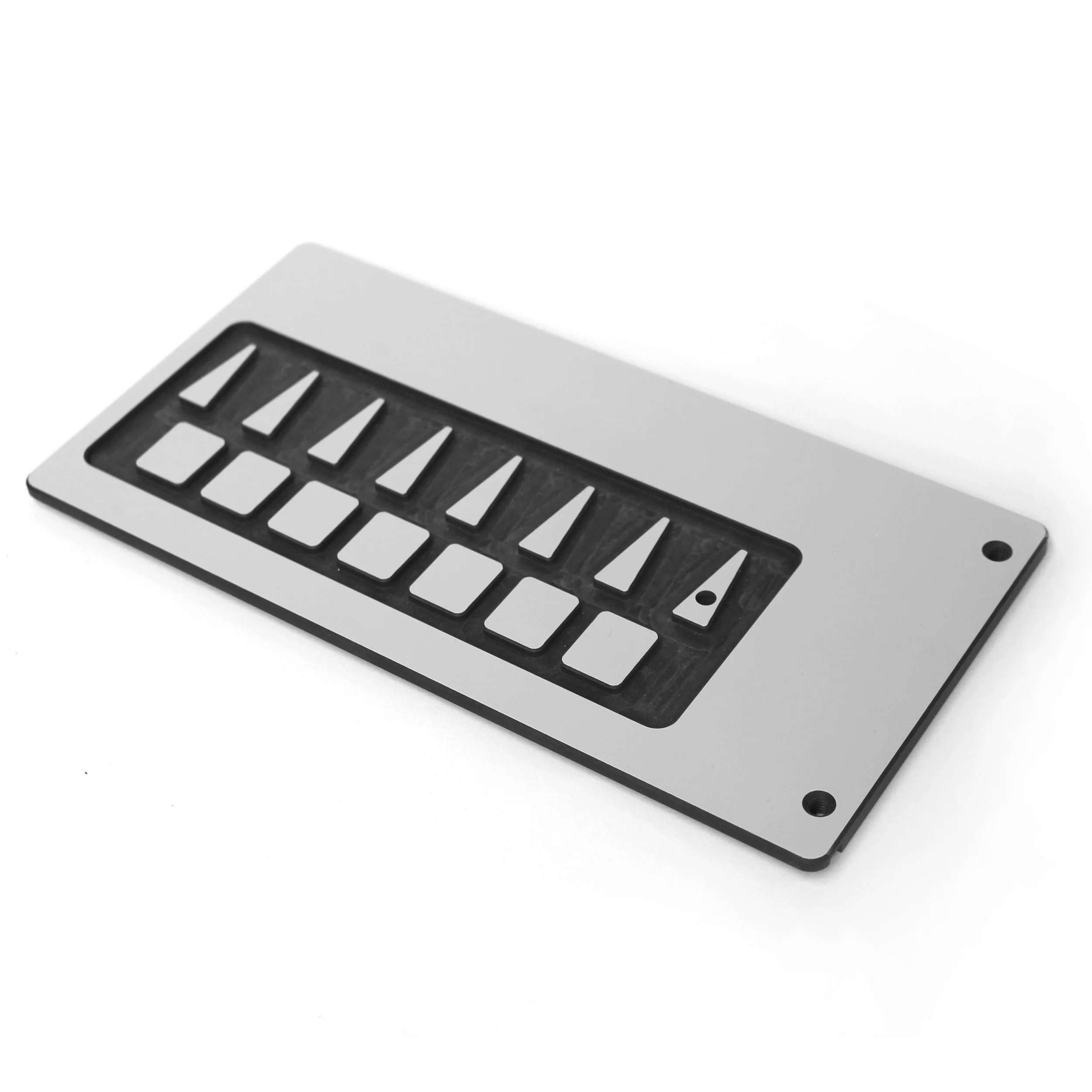 Any of our templates for through dovetails and half blind dovetails can be made to sizes and pitches different from those shown in our catalog. Just ask us for a quotation.
