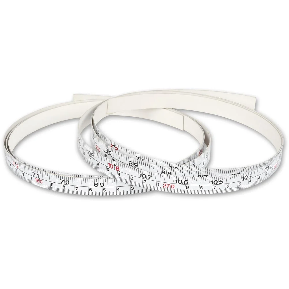 You can stick this handy scale to your 9148 Measuring Rod. This 13.5mm wide, self-adhesive measuring tape features both metric and imperial scales. Each tape comes in two parts: zero to 1.6m (0 to 63") and 1.5m to 3m (58" to 118"), which makes it easier to handle and set up. Easily trimmed to length with scissors, the tape is highly scuff resistant. The scales read in centimetres with millimetre divisions and inches divided into 1/8ths. Please note, these tapes are made from a flexible material, the expected accuracy is +/-0.25mm per 600mm.